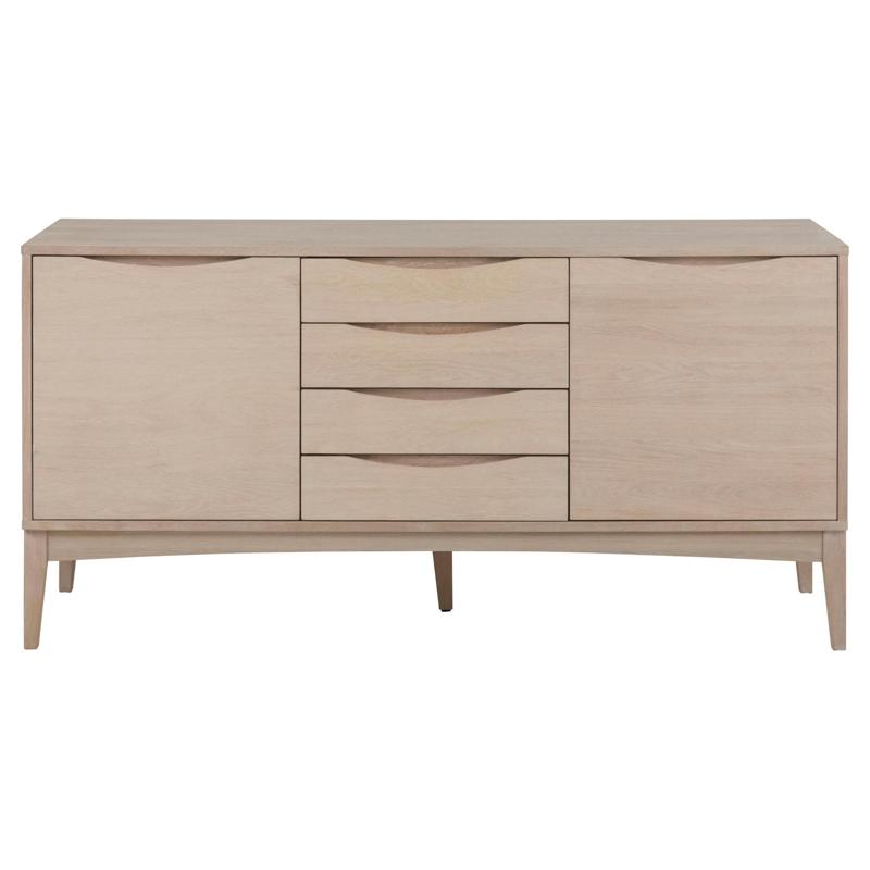 Комод Brixton, столешница, каркас, 2 дверцы, 4 ящика и 2 полки, дубовый шпон, промасленный, белый пигмент, основание дуб, промасленный, белый пигмент, с металлическими направляющими, полное выдвижение, 157,7x44x78,8 см