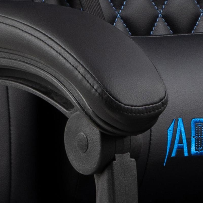 Игровое кресло Canyon, черная имитация искусственной кожи A5-62, 5-звездочное основание из матового черного нейлона и синего полипропилена, с логотипом ACT, регулируемый подлокотник, синяя строчка, тормозные ролики, подставка для ног, газлифт, поворот и наклон, 1 подушка
