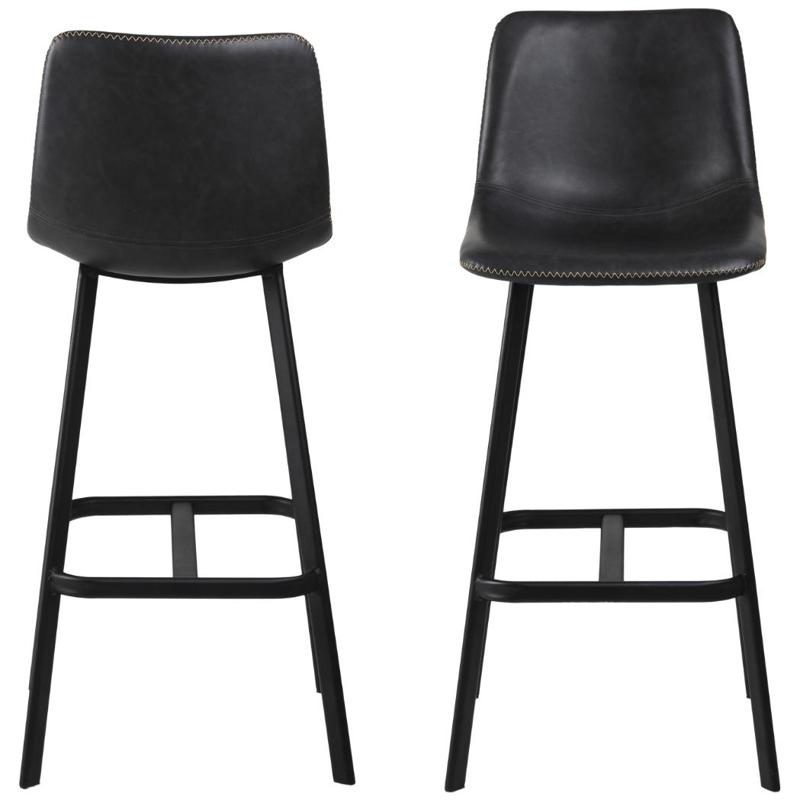 Барный стул I_Oregon, PU под винтажную кожу черного цвета 247, основание из матового черного шероховатого металла с порошковым покрытием, со строчкой кремового цвета и зигзагообразной строчкой