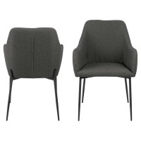 Обеденный стул June с подлокотником, ткань Sitka серого цвета 1.0, основание из матового черного шероховатого металла с порошковым покрытием
