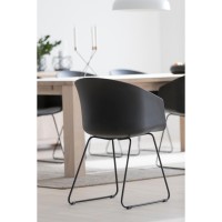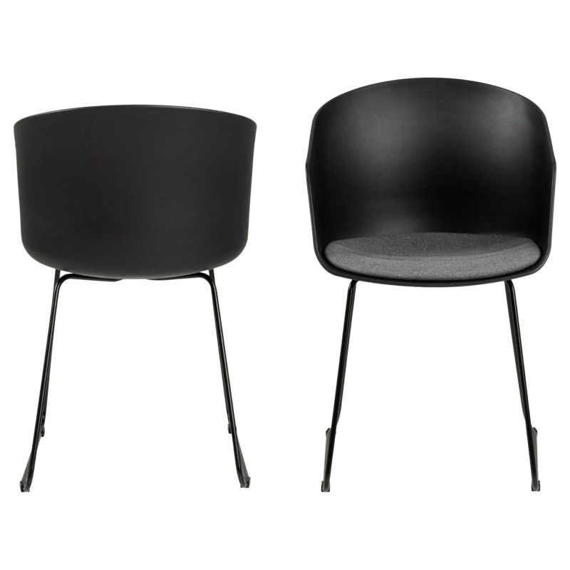 Обеденный стул Moon с подлокотником, ткань Spy серого цвета 20, черный полипропилен, основание из металла с порошковым покрытием черного цвета