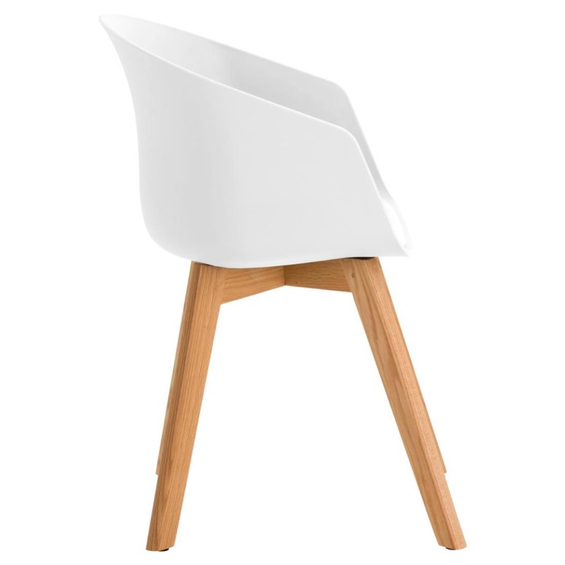 Обеденный стул Moon с подлокотником, имитация кожи PU белый 281, белый полипропилен, основание из матового дуба, лакированное NC