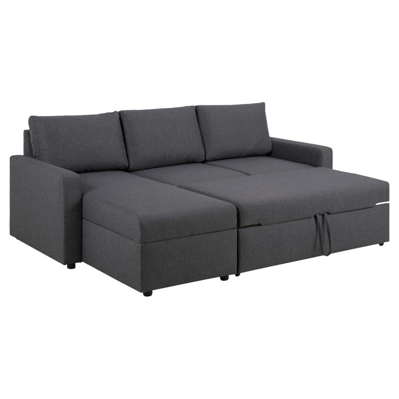 Диван-кровать Sacramento с подлокотником Двусторонний модуль, ткань Sawana серого цвета 5, основание матовый черный шероховатый полипропилен, со скрытым местом для хранения вещей и выдвижной кроватью, 218x155x84 см