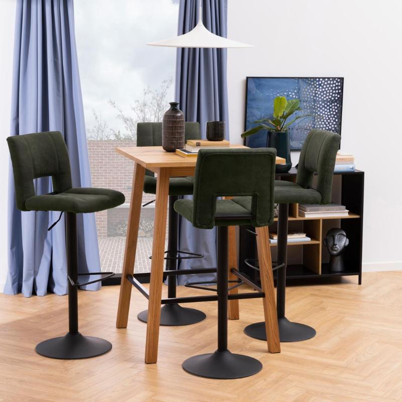 Барный стул Sylvia, ткань Preston оливково-зеленого цвета 38, основание из матового черного шероховатого металла с порошковым покрытием, с газлифтом, ручкой, поворотным механизмом и вертикальными швами