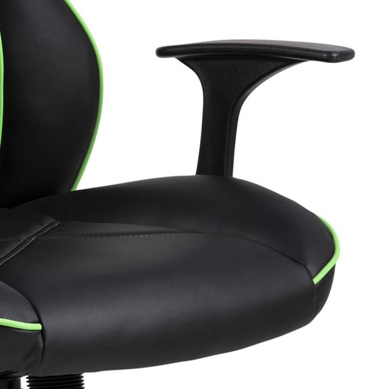 Игровое кресло Vayne, черная имитация искусственной кожи A5-62, основание из матового черного нейлона, с логотипом ACT, тормозные ролики, газлифт, зеленая строчка, поворот и наклон