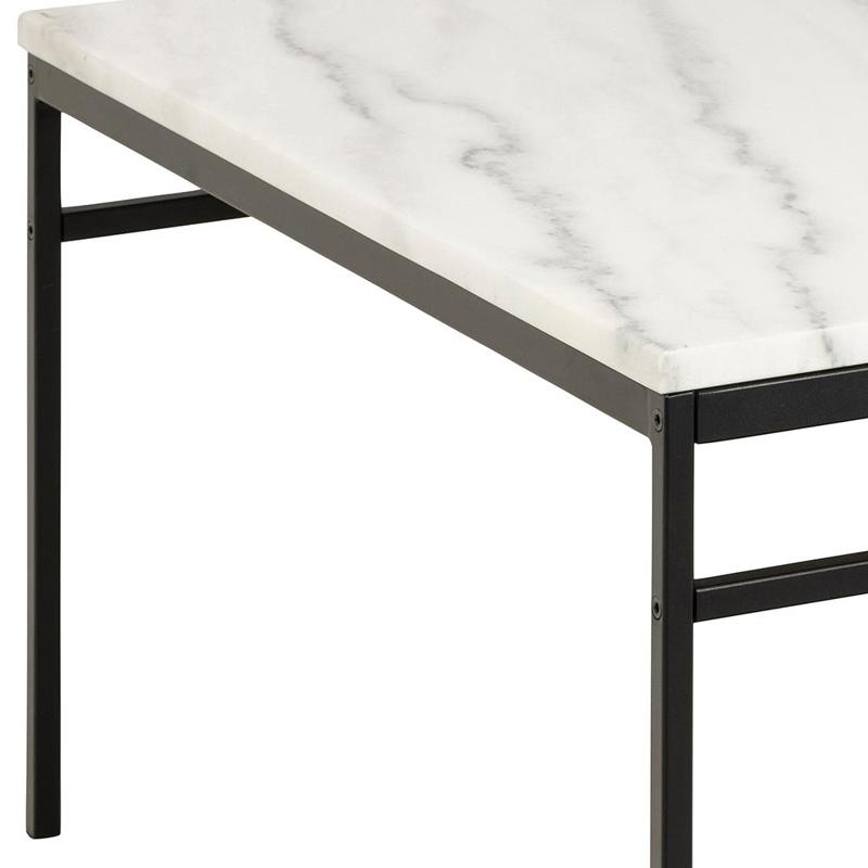 Квадратний журнальний столик Atalaya, стільниця з білого полірованого мармуру Гуансі, квадратна основа з матового чорного металу з шорстким порошковим покриттям, з підставкою для журналів, 80x80x45 см