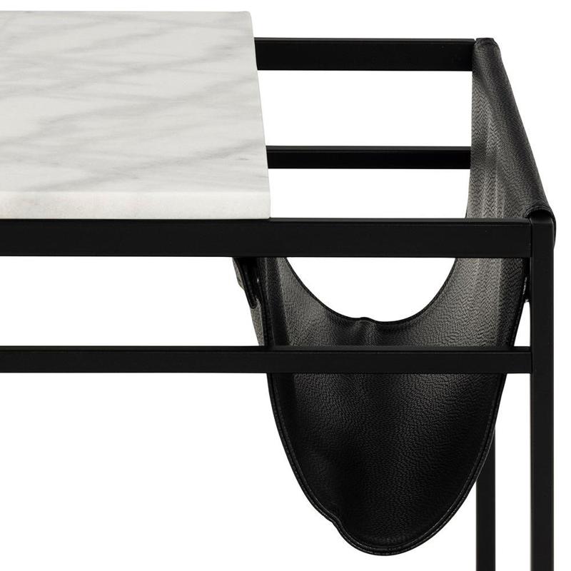Квадратний приставний столик Atalaya, стільниця з білого полірованого мармуру Гуансі, квадратна основа з матового чорного шорсткого металу з порошковим покриттям, з підставкою для журналів, 55x55x50 см