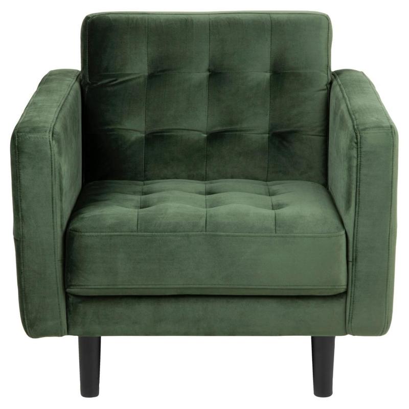 Крісло Bloom wood, тканина Vic кольору зеленого лісу 68AC, кругла основа з матового чорного лакованого каучукового дерева NC, з тафтингом, 86x83x80 см