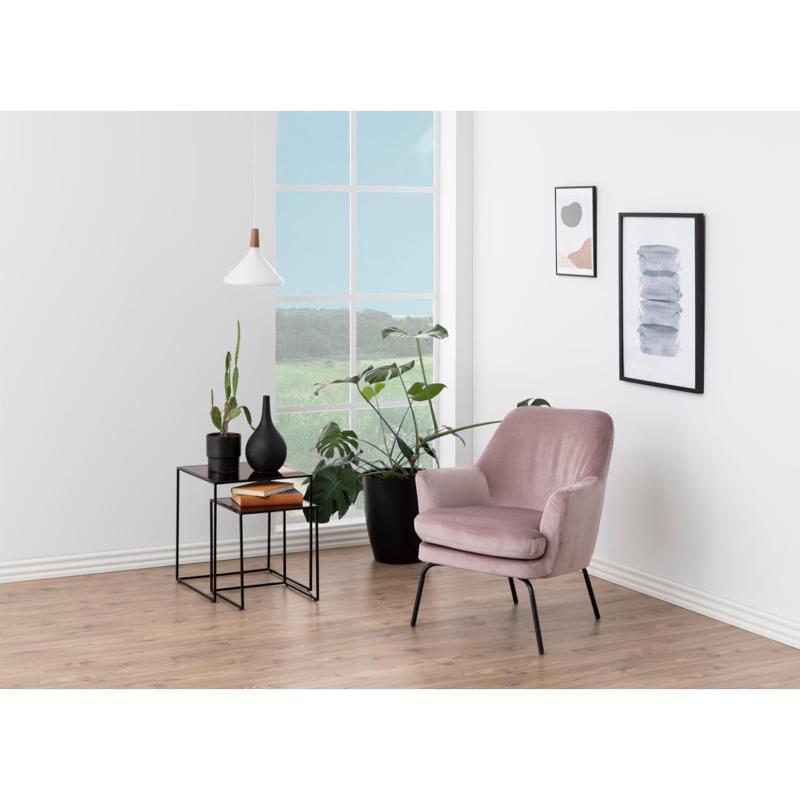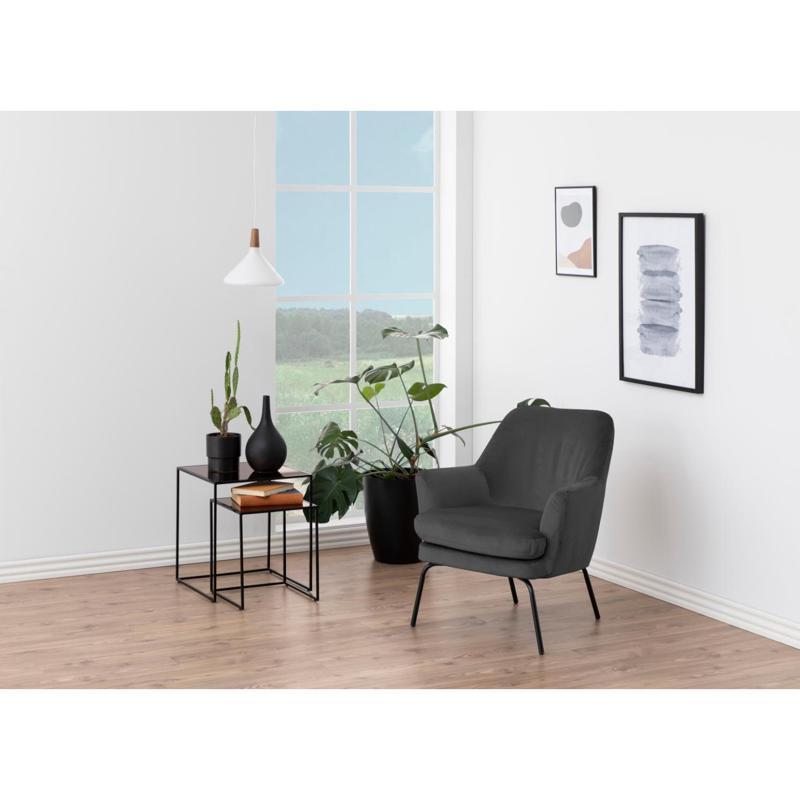 Комплект квадратних столиків Bolton, верхнє бронзове дзеркальне захисне скло, квадратна основа, глянсовий чорний метал з порошковим покриттям, набір з 2 шт.