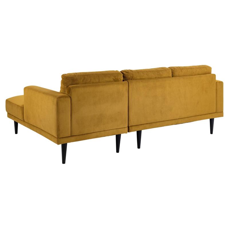 Dagmar 2-місний диван з шезлонгом RHF, тканина Wind гірчиця 230, основа з лакованого каучукового дерева чорний матовий NC, 245x150x90 см