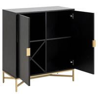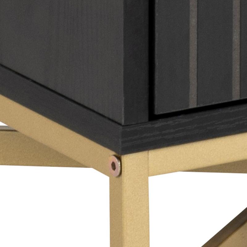 Шафа Jaipur, стільниця, рама, 2 дверцята та 2 полиці ясен чорний шорсткий меламін, основа з латуні з рідким покриттям, з передньою панеллю з ламелей, 80x40x90 см