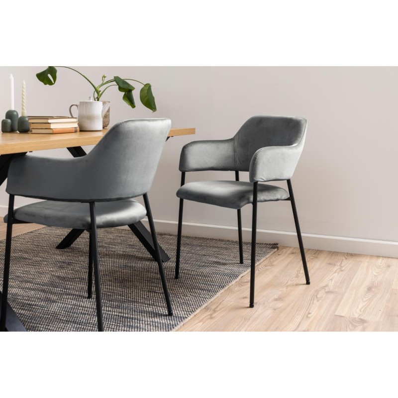 Обідній стілець Lima з підлокітником, тканина Dublin темно-сірого кольору 40, основа з матового чорного шорсткого металу з порошковим покриттям