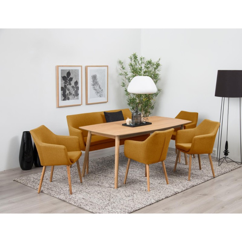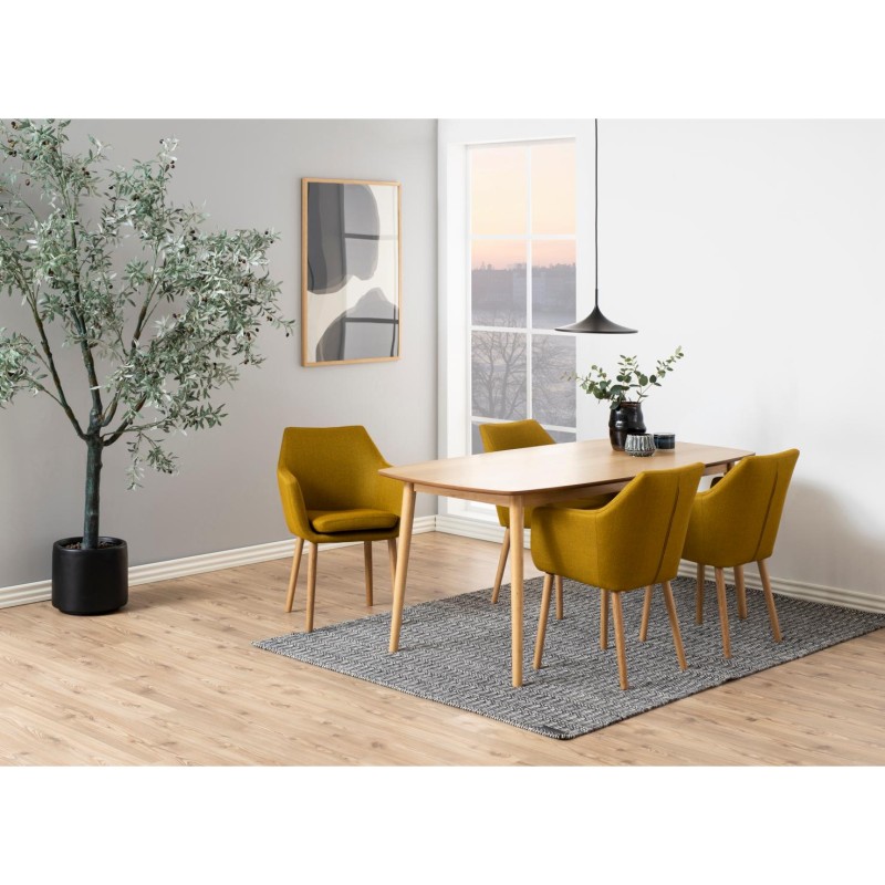 Обідній стілець Nora з підлокітником, тканина Corsica каррі 160, основа дуб промаслений