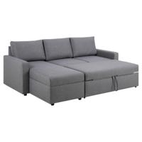Диван-ліжко Sacramento з підлокітником Двосторонній модуль, тканина Sawana світло-сірого кольору 21, основа матовий чорний шорсткий поліпропілен, з прихованим місцем для зберігання речей та висувним ліжком, 218x155x84 см
